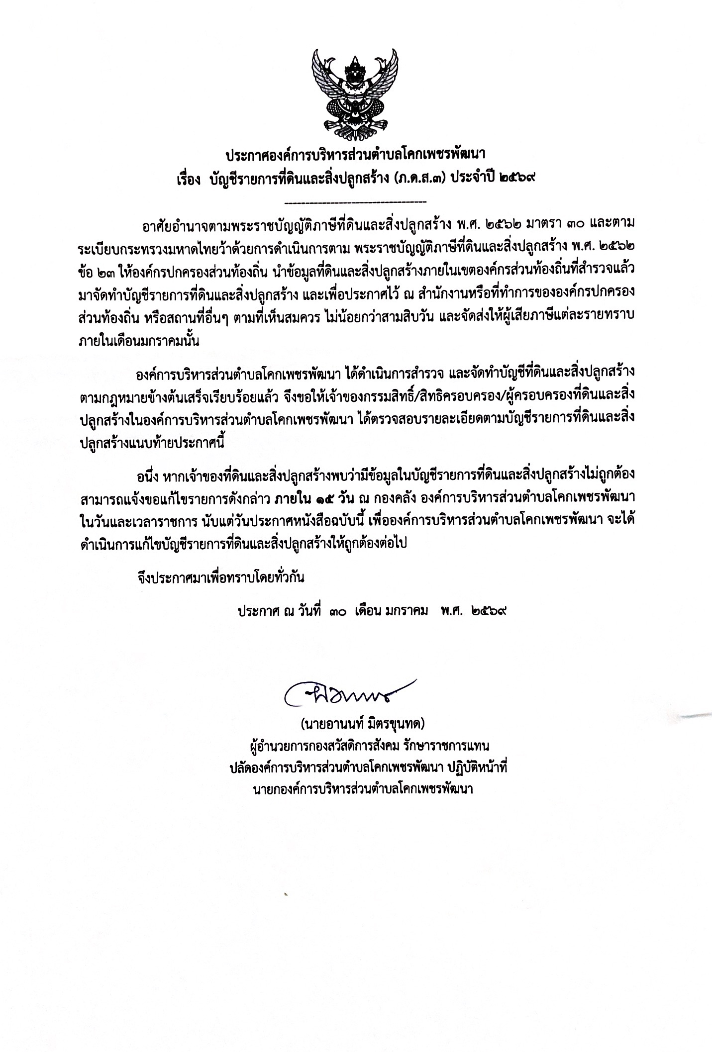 เรื่อง บัญชีรายการที่ดินและสิ่งปลูกสร้าง (ภ.ด.ส.3) ประจำปี 2569 |
